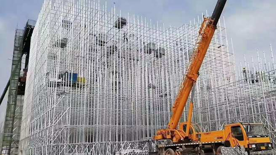盘扣式脚手架,支撑架分为立杆及横杆、斜杆,圆盘上有八个孔,四个小孔为横杆专用;四个大孔为斜杆专用。横杆、斜杆的连接方式均为插销式的,可以确保杆件与立杆牢固连结。横杆、斜杆接头特别依管的圆弧制造,与立杆钢管呈整面接触,敲紧插销后,呈三点受力( 接头上下二点及插销对圆盘一点)可牢牢固定增加结构强度并传递水平力,横杆头与钢管身采用满焊固定,力量传递无误。而斜杆头为可转动接头,以铆钉将斜杆头与钢管身固定。至于立杆的连接方式是以四方管连接棒为主,而连接棒已固定在立杆上,不用另外的接头组件来组合,可省却材料遗失及整理的麻烦。
